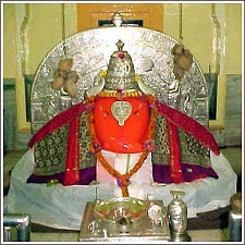 The murti of Lord Ganesha, riding a peacock, in the form of Mayureshwara is believed to have slain the demon Sindhu at this spot. The idol, with its trunk turned to the left, has a cobra (Nagaraja) poised over it protecting it. This form of Ganesha also has two other murtis of Siddhi (Capability) and Riddhi (Intelligence).